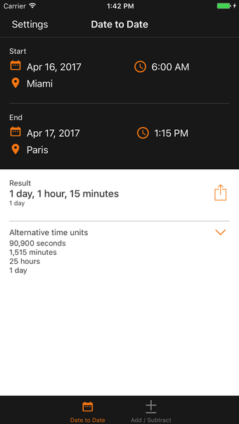 คุณสมบัติอีกอย่างที่เป็นประโยชน์ของ Time Date Calculator คือความสามารถในการส่งออกและแบ่งปันผลลัพธ์ของคุณ ไม่ว่าคุณจะต้องการส่งระยะเวลาที่คำนวณได้ให้เพื่อนร่วมงานหรือเพียงแค่ต้องการเก็บบันทึกสำหรับการอ้างอิงของคุณเอง แอปนี้จะทำให้คุณสามารถทำได้อย่างง่ายดาย